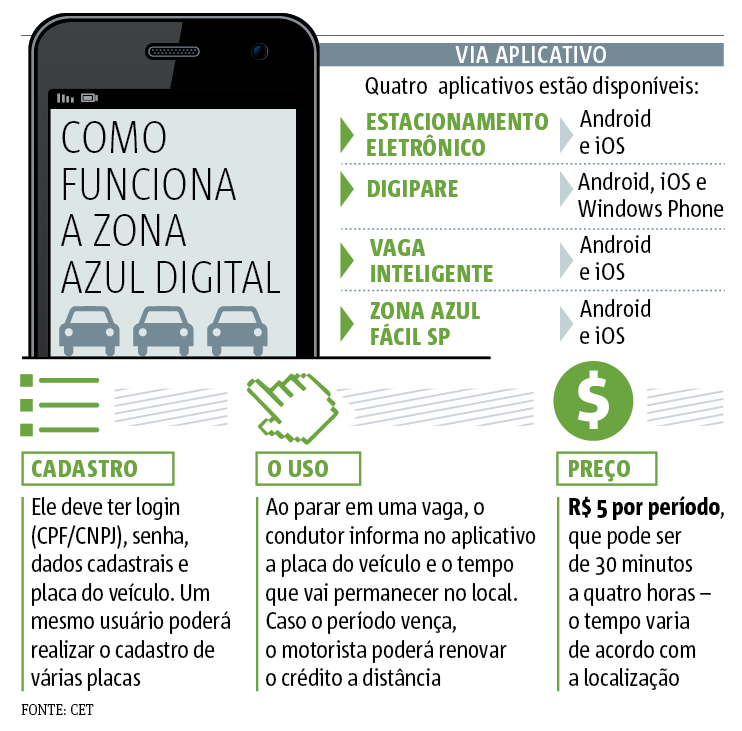 Desde julho, é possível baixar aplicativos para celular e cadastrar o cartão de crédito e a placa do veículo para comprar cartões digitais. Agora, a CET (Companhia de Engenharia de Tráfego) quer extinguir o papel para combater fraudes.